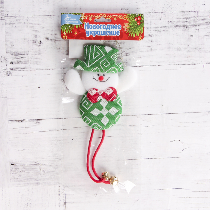 Подвеска мягкая "Снеговик в узорах" 6*20 см, зелёный