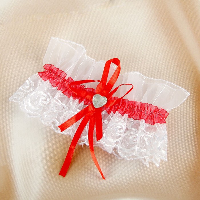 Подвязка для невесты элит,бело-красная