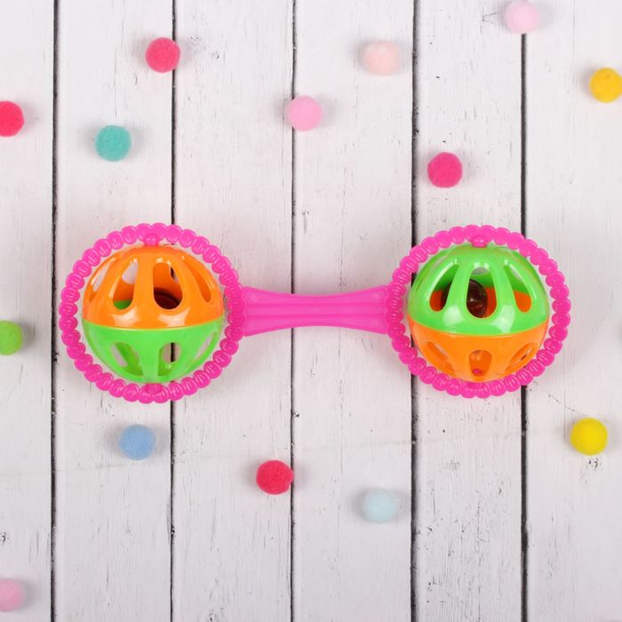 Звук в модели появляется при встряхивании. Причудливая форма надолго займёт внимание карапуза. Погремушку удобно использовать: лёгкая вещица подходит для захвата маленькими ладошками.