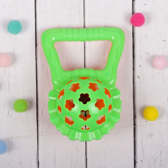 Звук в модели появляется при встряхивании. Причудливая форма надолго займёт внимание карапуза. Погремушку удобно использовать: лёгкая вещица подходит для захвата маленькими ладошками.