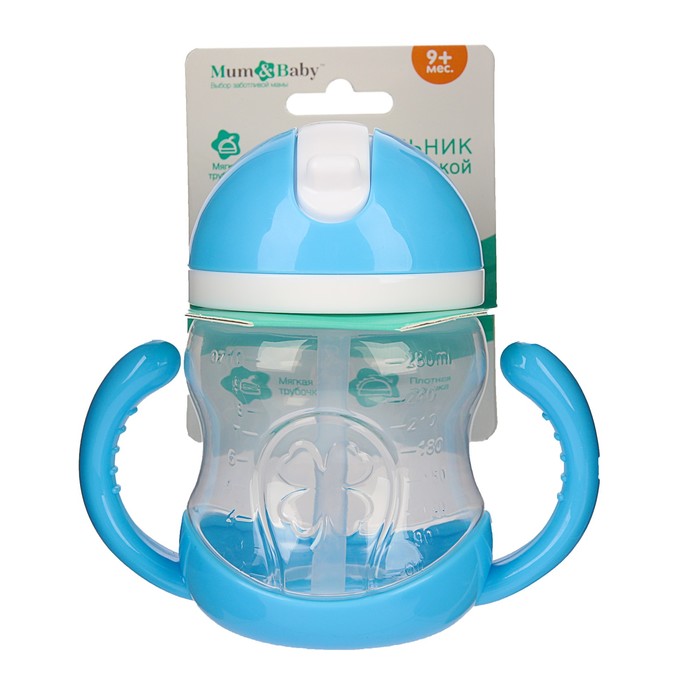 Поильник с трубочкой детский, 280 мл, от 9 мес., цвет голубой
