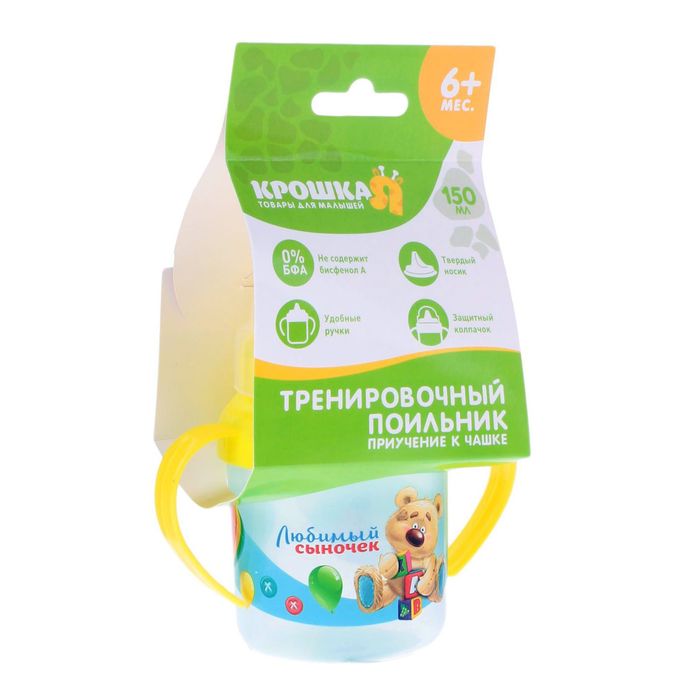 Поильник с твёрдым носиком «Любимый сыночек», крышечка, с двумя ручками, 150 мл, от 6 мес.
