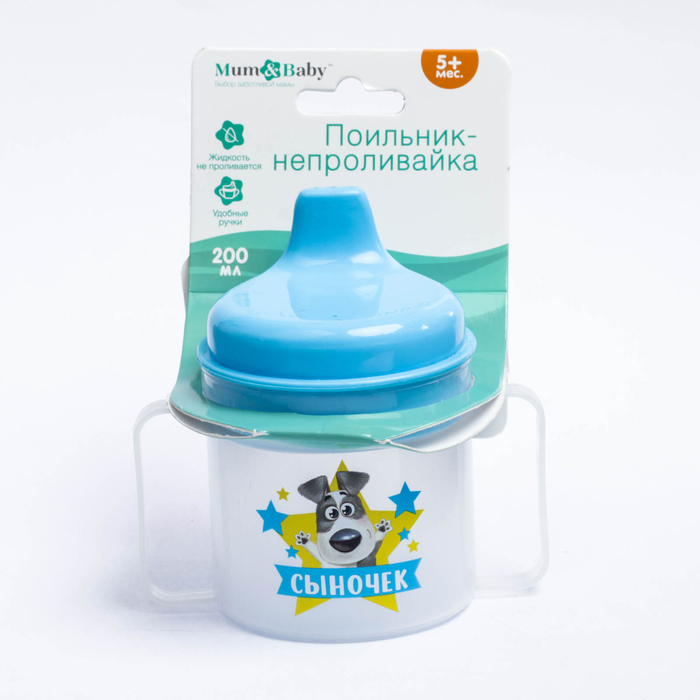 Поильник с твёрдым носиком «Сыночек», 200 мл, от 5 мес., цвет голубой