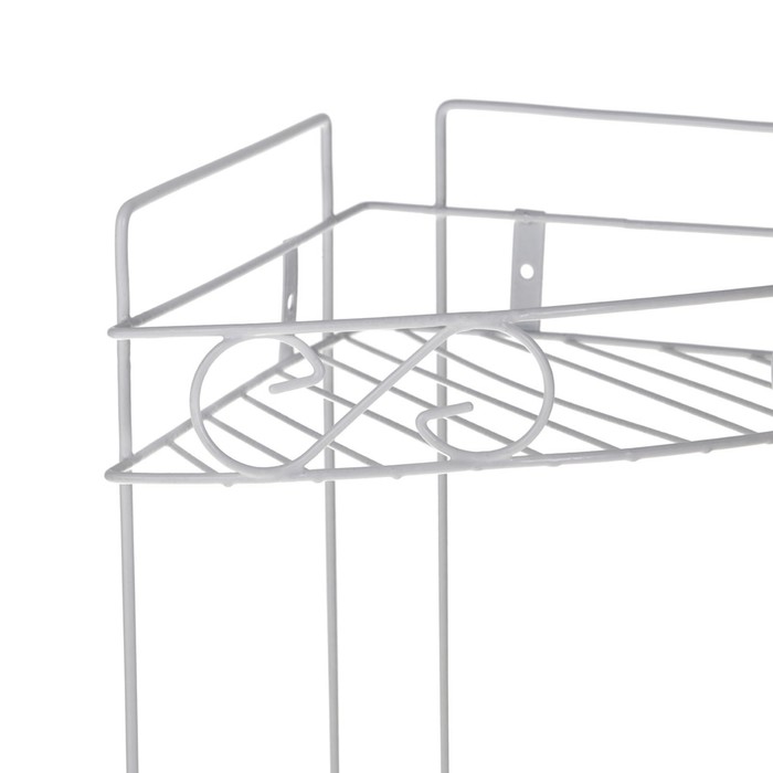 Полка 3х-ярусная угловая, цвет белый прекрасно впишется в интерьер ванной комнаты. Изделие выполнено из влагостойких материалов, которые надолго сохраняют первозданный внешний вид. Теперь хранить гигиенические принадлежности и поддерживать порядок будет легко и просто!