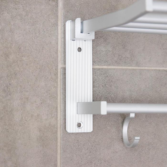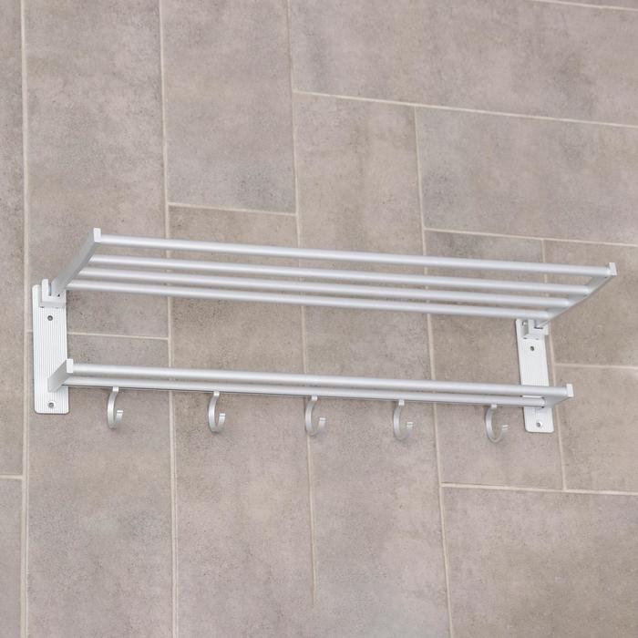 Полка откидная с держателем полотенец, 5 крючков, цвет серый