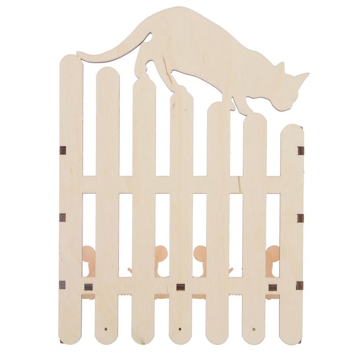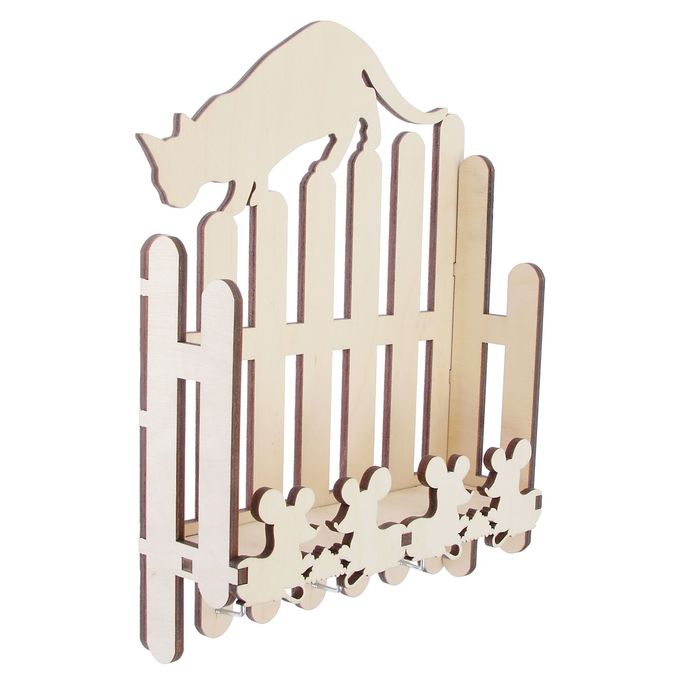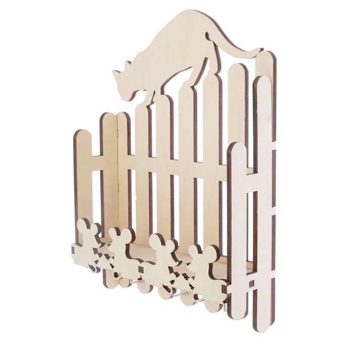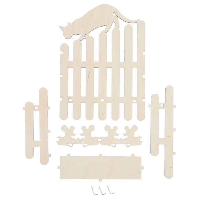 Полочка для декора из фанеры "Кот и мыши" (набор 5 деталей) 29х21х6 см