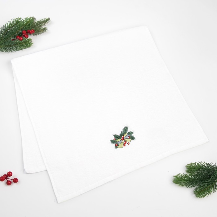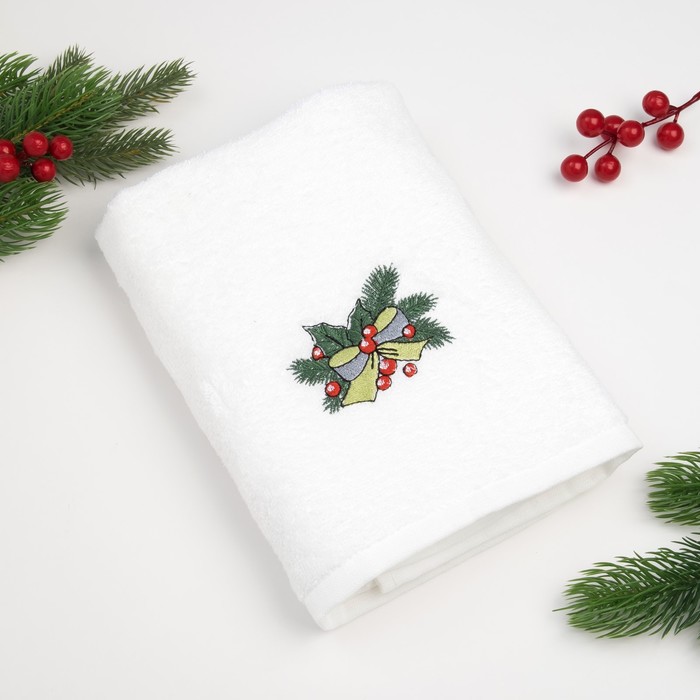 Полотенце «Экономь и Я» Новогодний венок 50×90 см, цвет белый, 100% хлопок, 340 г/м²