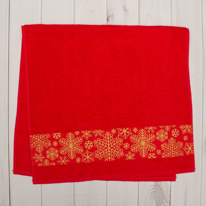 Полотенце махровое Collorista "Снежинки" красн 50х90 см 100% хлопок, 370гр/м2