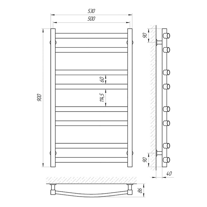 Полотенцесушитель электрический "Ларис Гранд" ЧКП8, 500х900 мм, 137 Вт, правый, белый