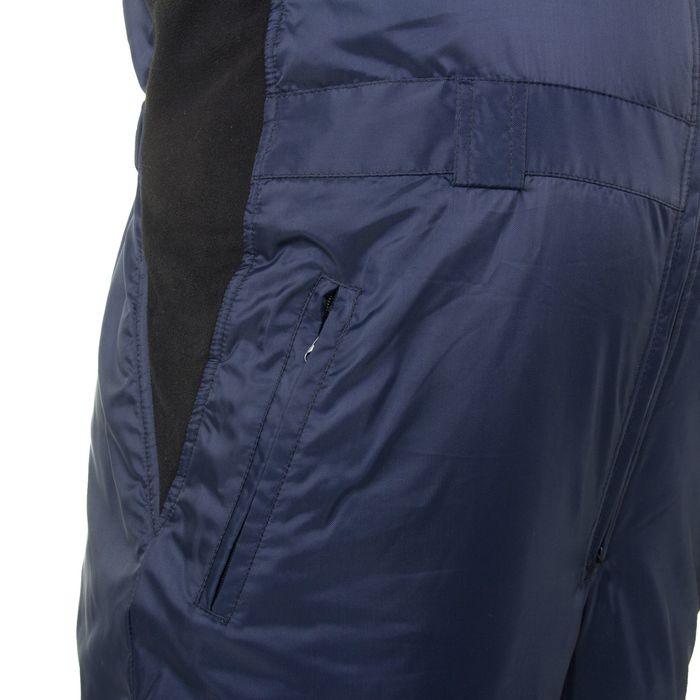 На полукомбинезоне три внешних кармана, в области колена расположен карман для защитных вкладышей, молния на двух замках, пояс регулируется эластичной тесьмой, есть шлёвки под ремень.