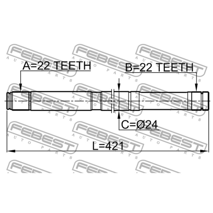 Полуось левая 22x421x22 febest 0212-b10mtlh