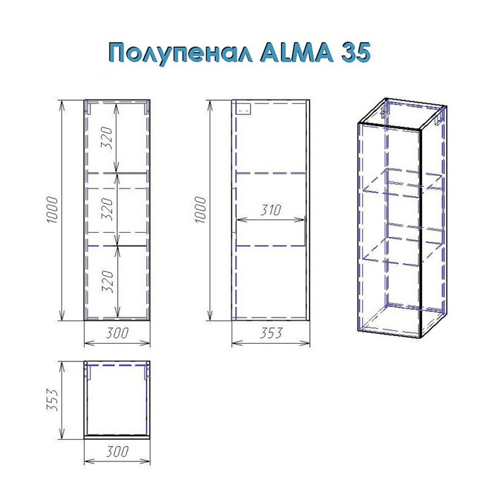 Полупенал Alma 35, правый, белый лак