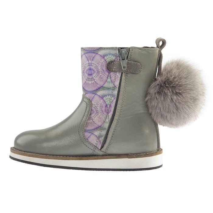 - Яркий принт и меховой помпон придают полусапожкам оригинальности.