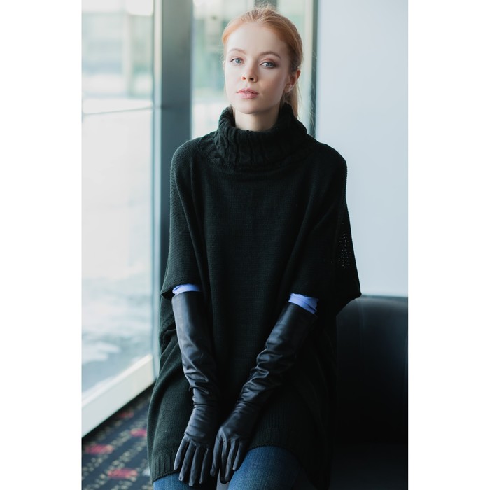 Пончо с воротом защитит от холода. Чтобы утеплиться ещё больше, под низ можно надеть однотонные рубашку или джемпер. Элегантности образу добавят удлинённые перчатки.