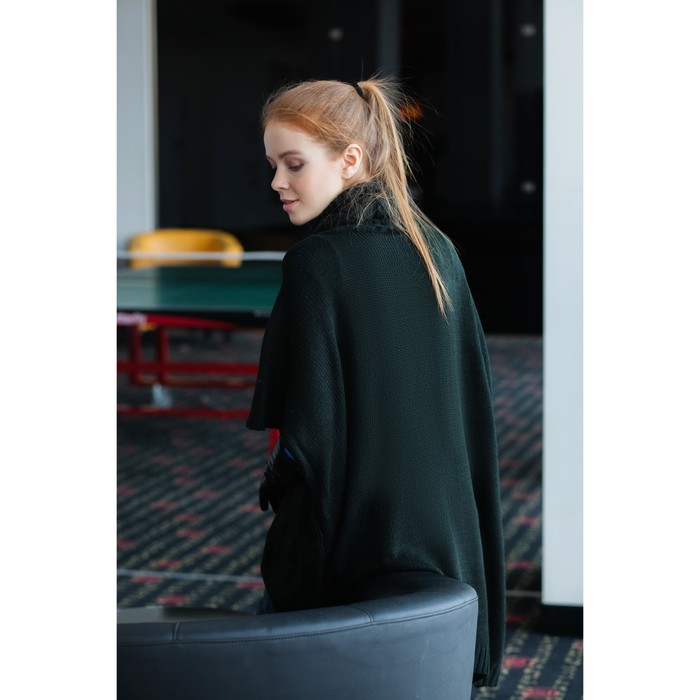 Пончо с воротом (кардиган) 76х140 см, чёрно-зелёный, акрил 100%