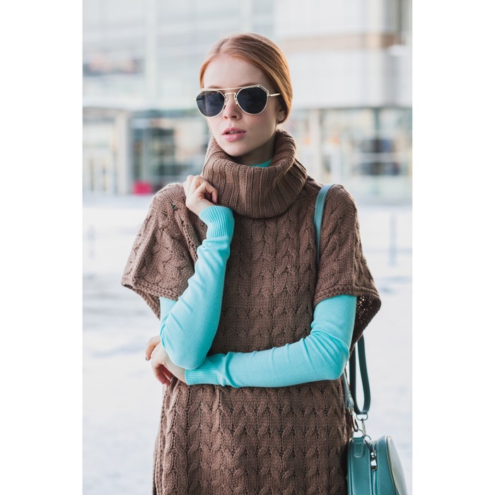 Пончо с воротом защитит от холода. Чтобы утеплиться ещё больше, под низ можно надеть однотонные рубашку или джемпер. Элегантности образу добавят удлинённые перчатки.