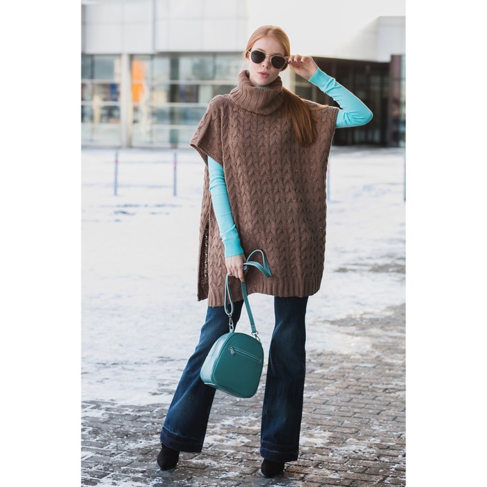 Модель хорошо смотрится и с джинсами, и с брюками классического покроя. В тандеме с пончо ботфорты или сапоги сделают образ уютным.