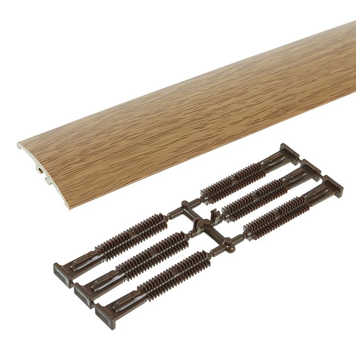 Порог поможет в создании плавных переходов между одноуровневыми напольными покрытиями и в зонировании помещения. Скрытая система крепления и клеевая основа изделия гарантируют надёжную фиксацию, а высококачественные материалы — долгий срок службы. Порог плотно прилегает к кромкам поверхностей, закрывает стыки, препятствуя проникновению грязи и влаги, что продлевает срок эксплуатации напольных покрытий.