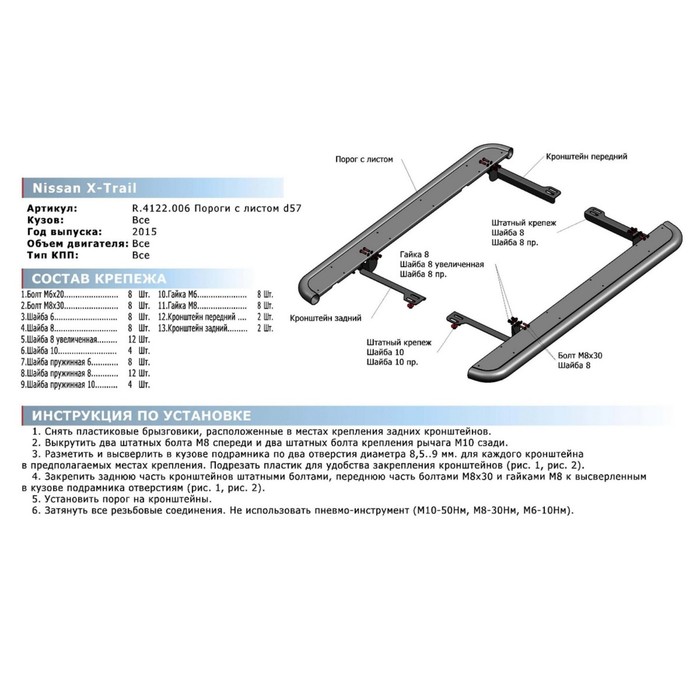 Не секрет, что машина давно уже перестала восприниматься как просто средство передвижения, и водители покупают всё лучшее для своих железных коней. Пороги с листом Nissan XTrail, d57, 2 шт. R.4122.006 — идеальный выбор, если вы ставите целью и улучшение технических характеристик, и поддержание внешнего вида автомобиля.
