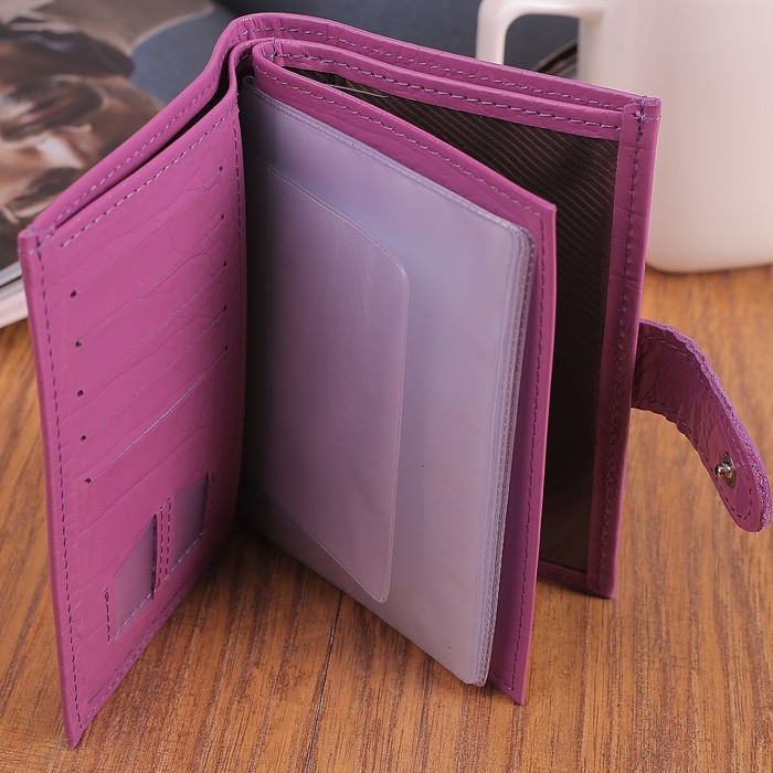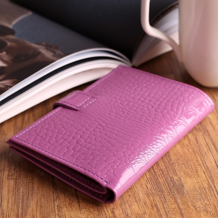Портмоне 3 в 1, Textura, 14*1,5*10, отдел для купюр, 5 карманов для карт, отдел для автодокументов и паспорта, цвет кайман сирень
