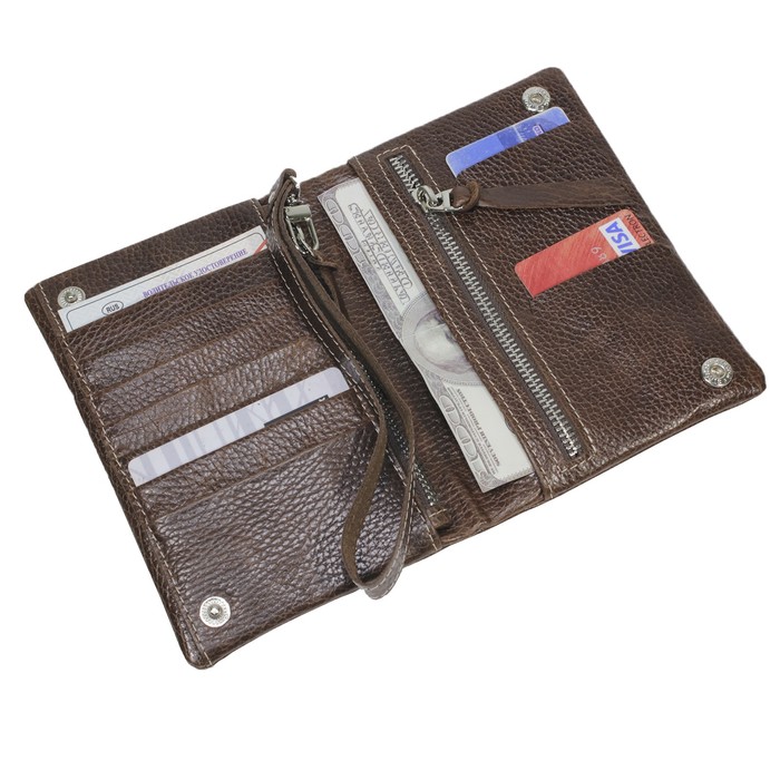 Портмоне-купюрник, кнопка, натуральная кожа, цвет коричневый флотер