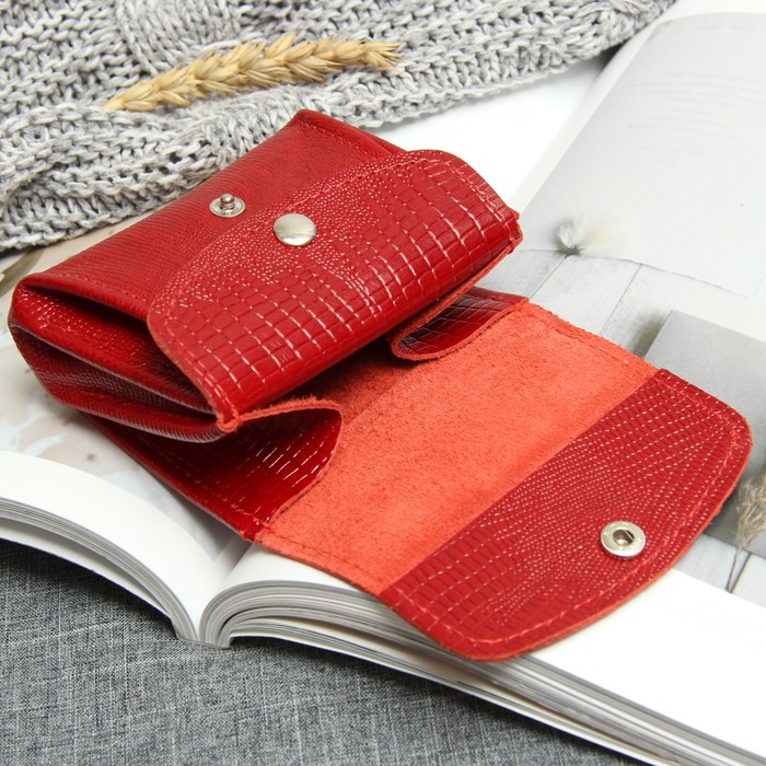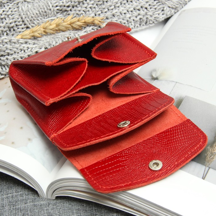 Портмоне-монетница, 2отдел на кнопке, игуана, цвет красный