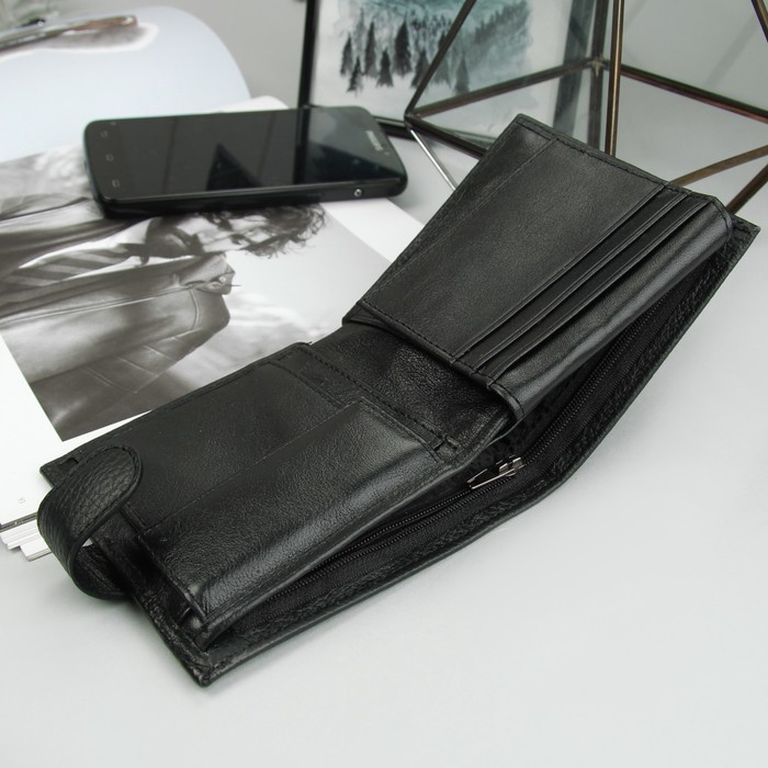 Портмоне мужское, 2 отдела, для карт, монет, чёрный