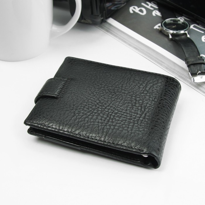 Портмоне мужское, 3 отдела, для карт, для монет, цвет чёрный