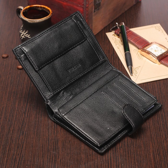 Портмоне мужское 3 в 1 (авто+паспорт), 2 отдела, для карт, для монет, цвет чёрный