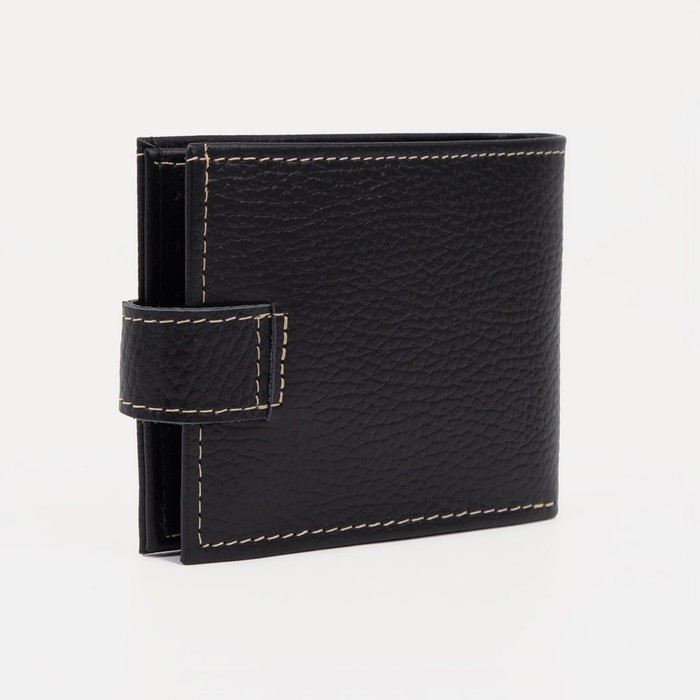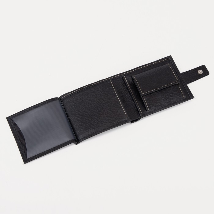 Портмоне мужское на кнопке, 2 отдела, отдел для монет, отдел для карт, чёрный флотер
