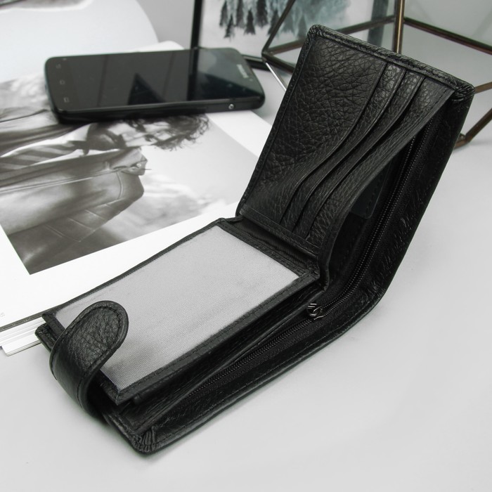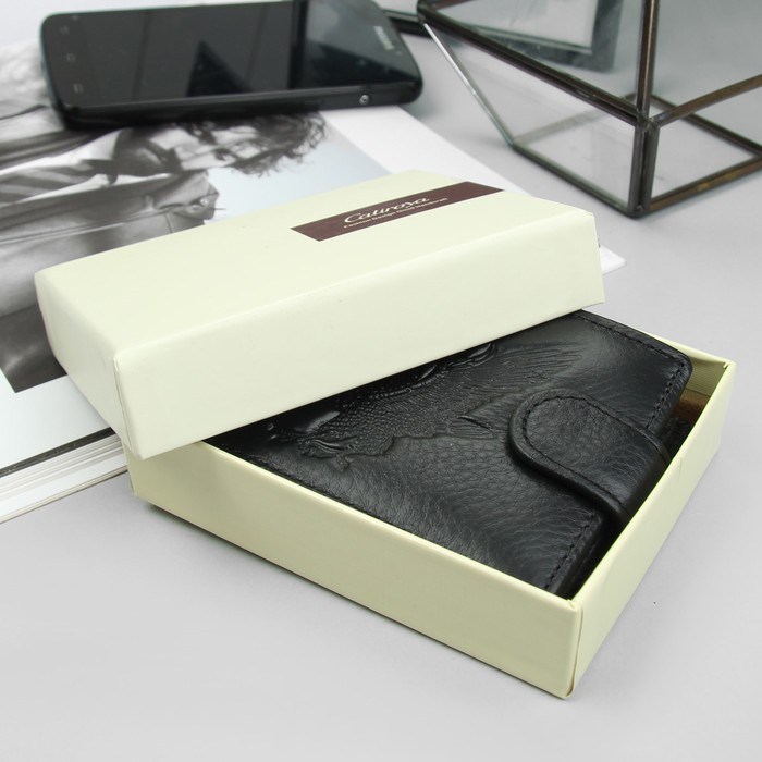 Портмоне мужское "Орёл", 3 отдела, отдел для карт, для монет, цвет чёрный