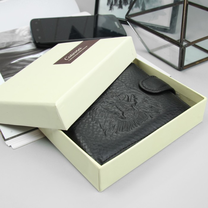 Портмоне мужское "Волк", 3 отдела, отдел для карт, для монет, цвет чёрный