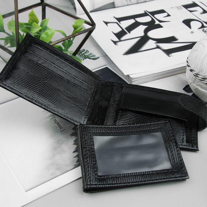 Портмоне на кнопке, 1 отдел, отдел для монет, чёрная игуана