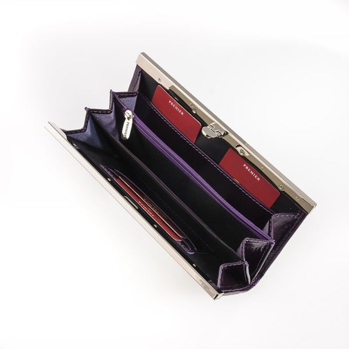 Портмоне женское на фермуаре, 3 отдела для купюр, для монет, для кредитных карт, цвет фиолетовый