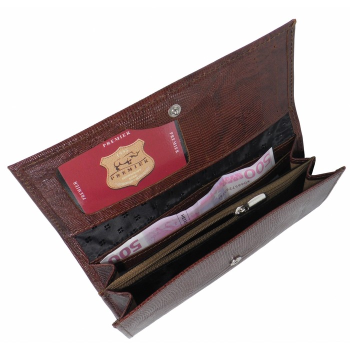 Портмоне женское на кнопке, 1 отдел для купюр, цвет коричневый