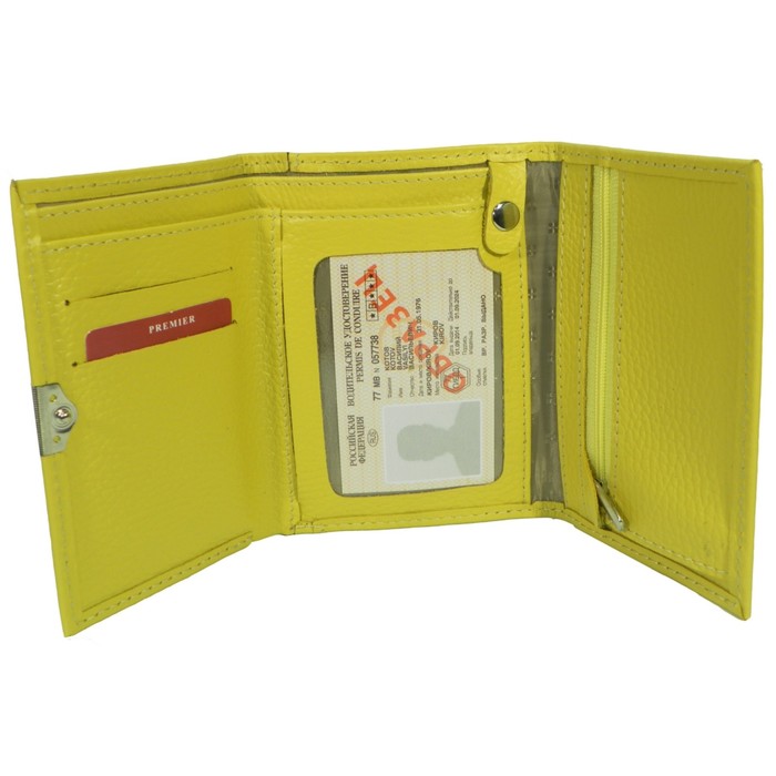 Портмоне женское на кнопке, отдел для купюр, для монет, для кредитных карт, цвет жёлтый