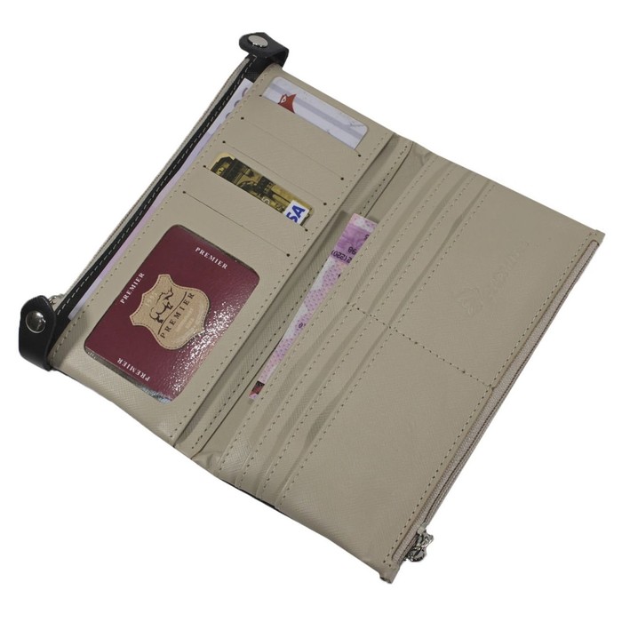 Портмоне женское, размер 10х20 см, н/к, чёрный сафьян/бежевый сафьян