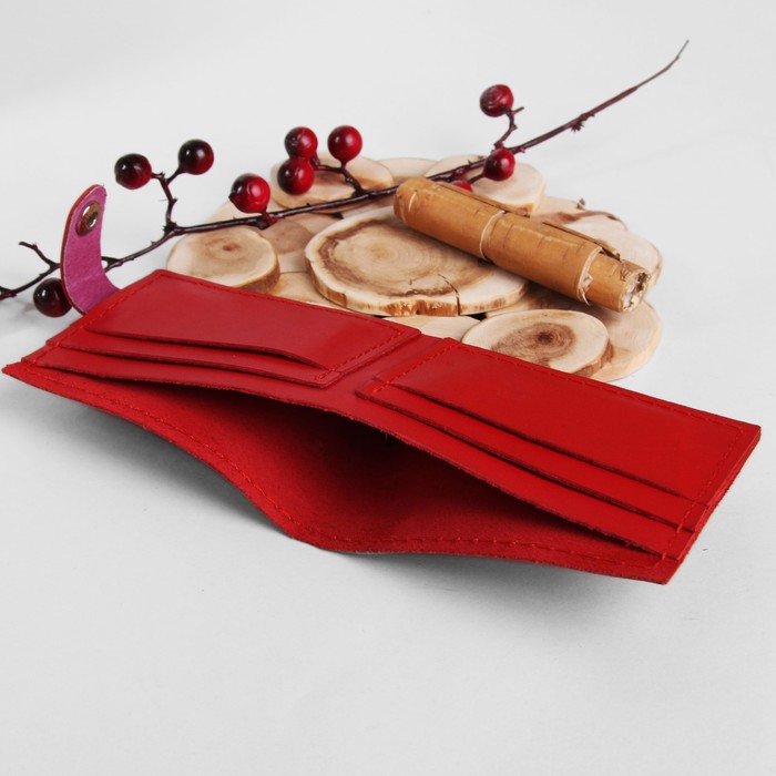 Портмоне женское с хлястиком, отдел для кредиток, цвет красный