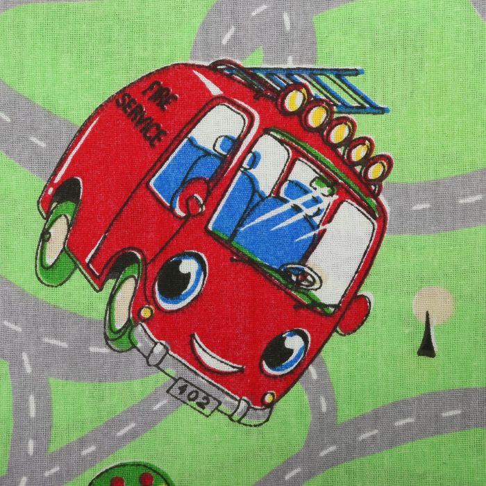 Постельное бельё "Экономь и Я" 1,5 сп. Зелёные Машинки 145х210 ± 5 см, 150х210 ± 5 см, 50х70 ± 5 см, бязь 120 гр/м²