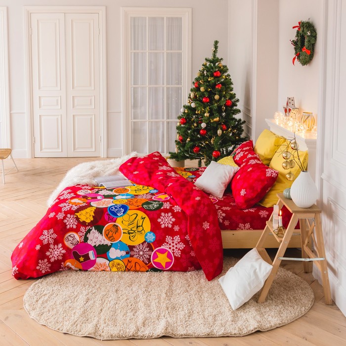 Постельное бельё «Экономь и Я» Новогодние подарки 2 сп. 175×210 см, 200×210 см, 50×70 см - 2 шт., микрофайбер, 75 г/м²