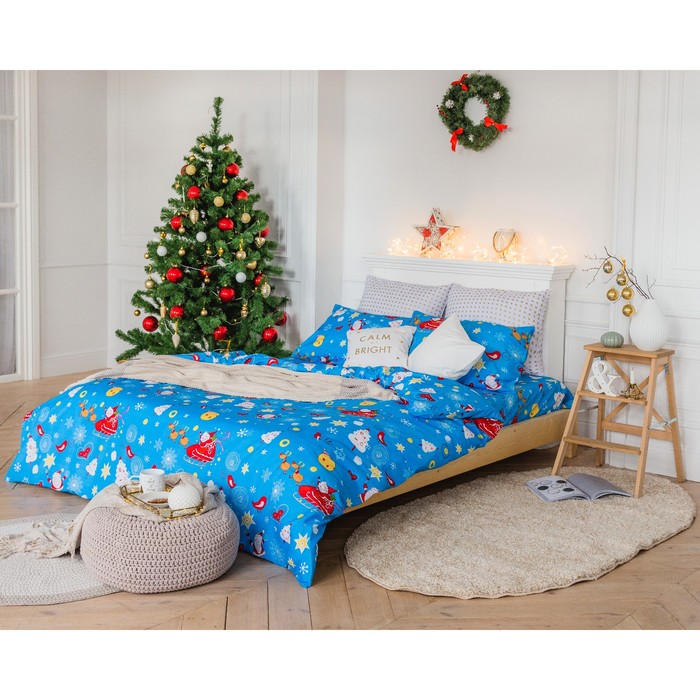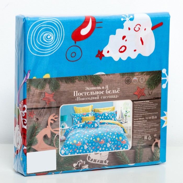 Постельное бельё «Экономь и Я» Новогодний снегопад 1,5 сп. 143×210 см, 150×210, 50×70 - 2 шт., микрофайбер, 75 г/м²