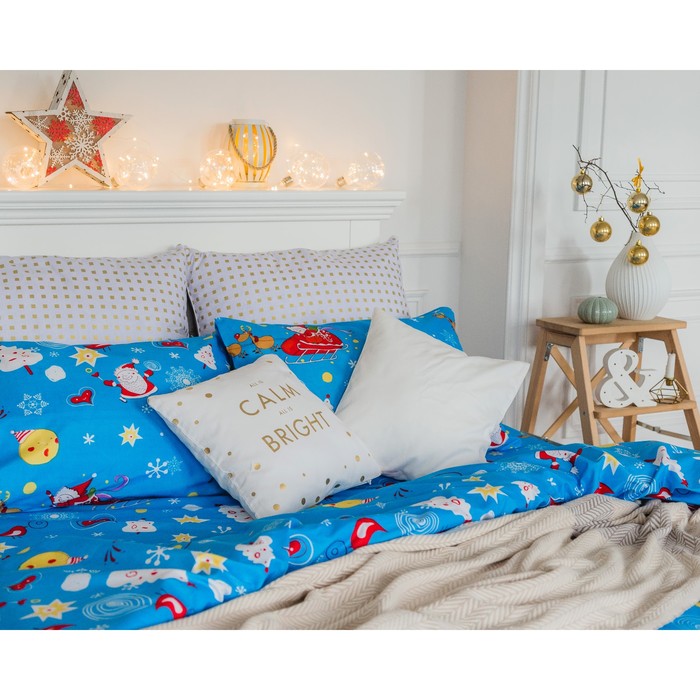 Постельное бельё «Экономь и Я» Новогодний снегопад евро200×210 см, 210×240 см, 50×70 - 2 шт., микрофайбер, 75 г/м²