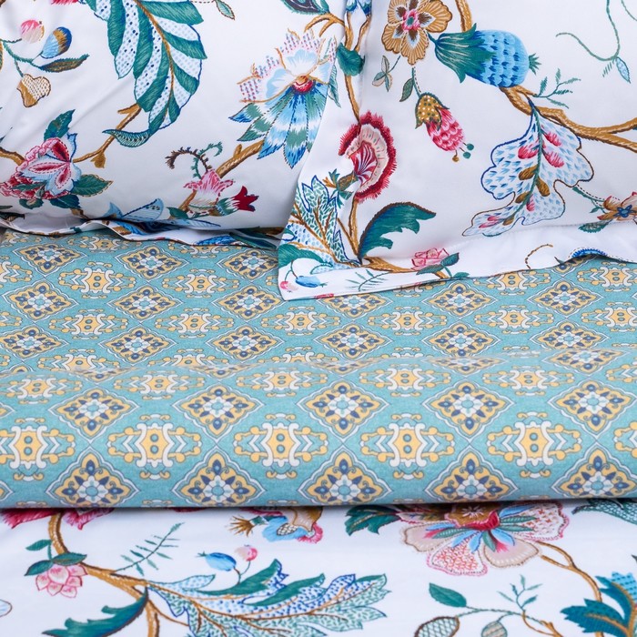 Особенности комплекта- Простыня и низ пододеяльника выполнены из ткани-компаньона.
