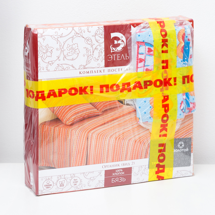 Постельное бельё "Этель" 1,5 сп Органик (вид 2) 143х215 см,150х214 см, 70х70 см 2 шт,100% хл, бязь + подарок - полотенце микс
