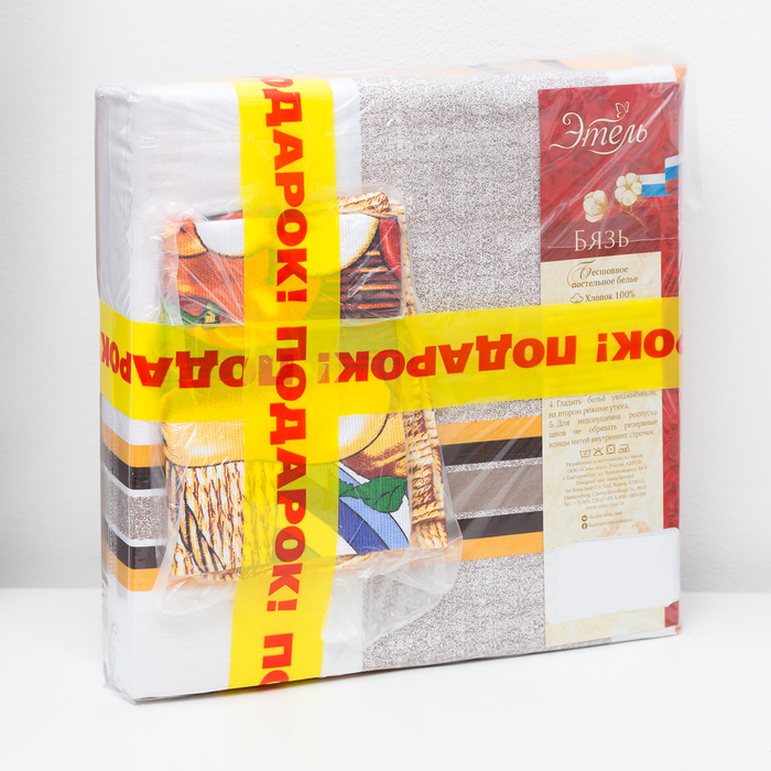 Постельное бельё "Этель" 2 сп. Кураж 175х215см, 200х220см, 70х70 см - 2 шт, 100% хл, бязь125 г/м2 + подарок - полотенце микс