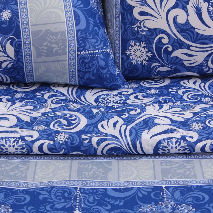 Евро: пододеяльник, 200 × 217 см — 1шт.; простыня, 220 × 240 см — 1 шт.; наволочка, 70 × 70 см — 2 шт.