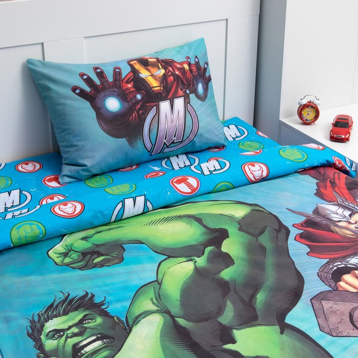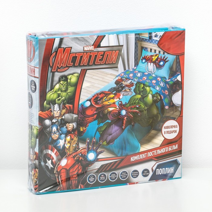 Постельное бельё "Команда Мстители" 1,5 сп., размер 143х215 см, 150х214 см, 50х70 см -1 шт, 100% хлопок, поплин 125 г/м2