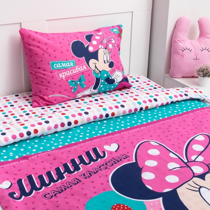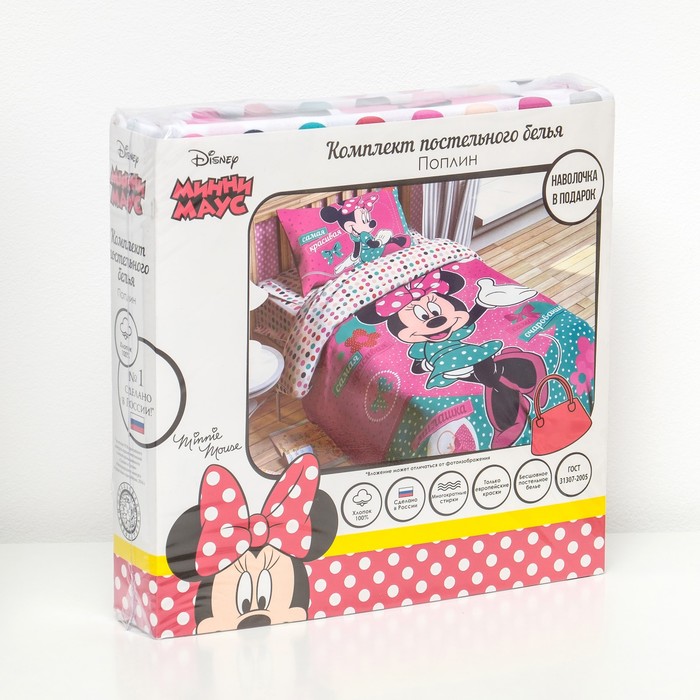 Постельное бельё "Минни Маус" 1,5 сп., размер 143х215 см, 150х214 см, 50х70 см -1 шт., 100% хлопок, поплин 125 г/м2