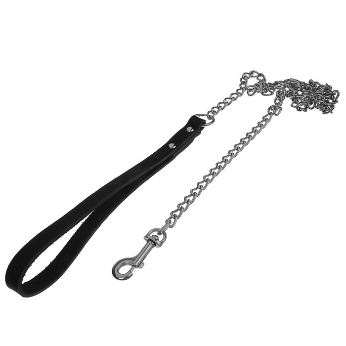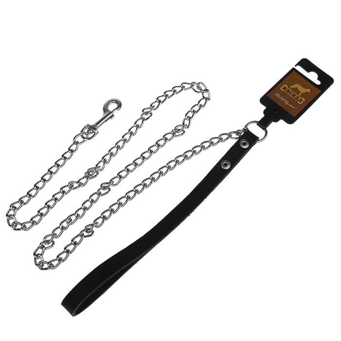 Поводок цепной с кожаной ручкой, 1,2 м х 2,5 мм