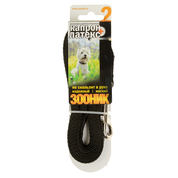 Поводок Зооник капроновый с двойной латексной нитью, 2 м х 1 см, черный